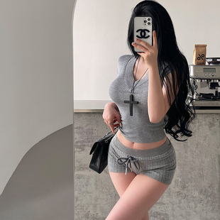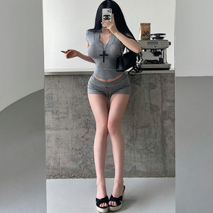 YoungGirlDay漫感长腿性感低腰抽绳松紧腰纯色运动休闲短裤 女 热裤