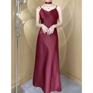 法式 醋酸缎面轻奢高级感气质显瘦长裙子 吊带连衣裙女鱼尾裙春夏季