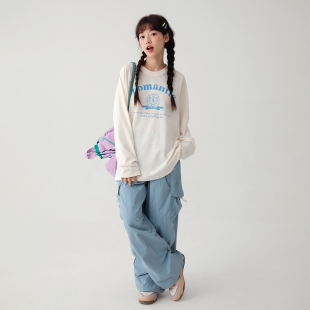 T恤圆领上衣青少年防晒罩衫 诺诺公主S1N初中生夏美式 学院轻薄长袖