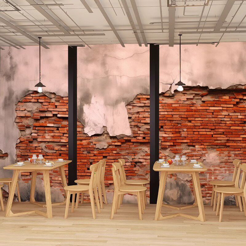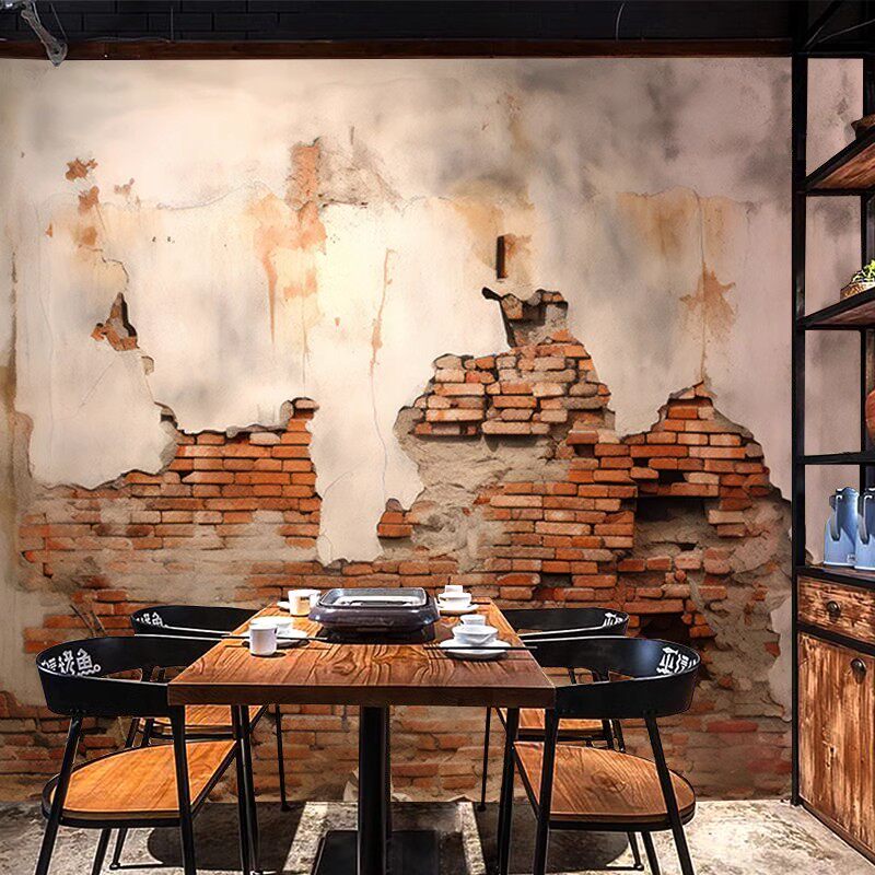 3D砖墙串串火锅店装 修壁纸复古工业风水泥墙纸烧烤咖啡店背景墙布