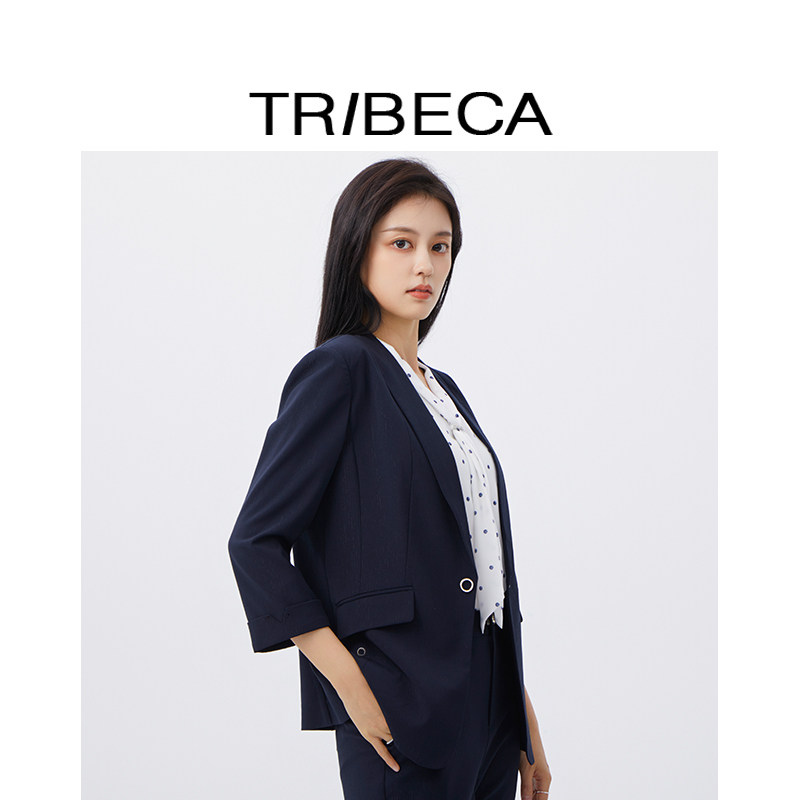 微亮丝条纹七分袖 通勤修身 小西服 新款 TRIBECA翠贝25春夏商场同款