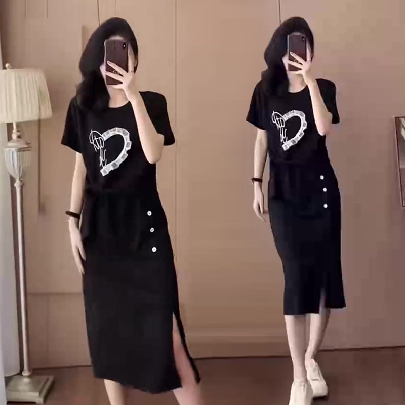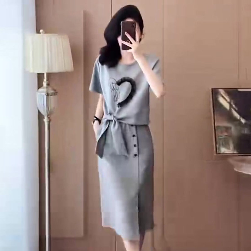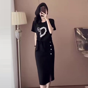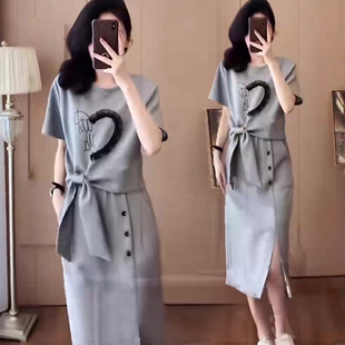 洋气蝴蝶结短袖 裙女2025夏新款 上衣显瘦开叉裙 套装 设计感休闲时尚