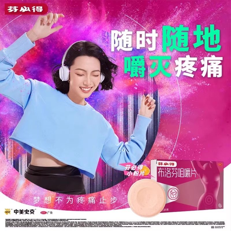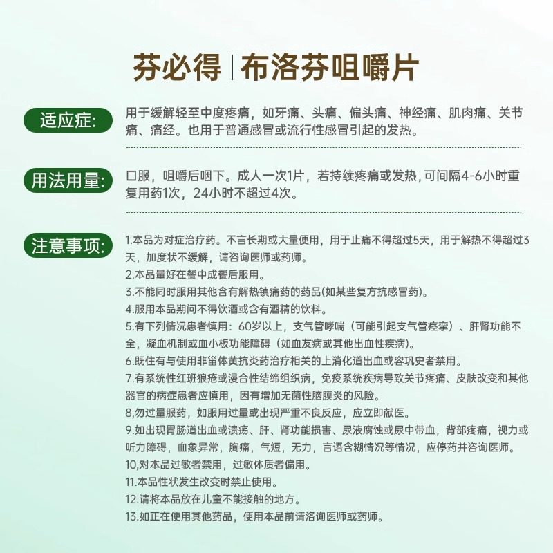 芬必得小粉布洛芬咀嚼片缓解牙痛药痛经止痛药品感冒生理进口