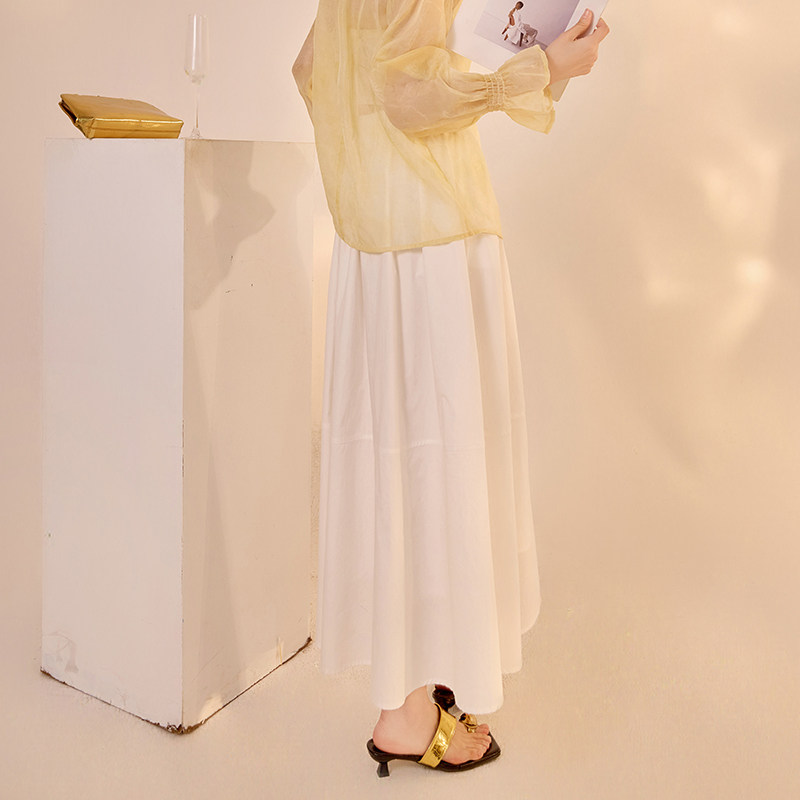 纯色高腰设计长裙高级气质个性 N2027 显瘦简约百搭宽松松紧腰半裙