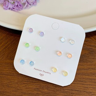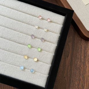 S925银针彩色炫彩豆豆清新耳洞耳钉套装 简约小巧耳环圆球银针耳饰