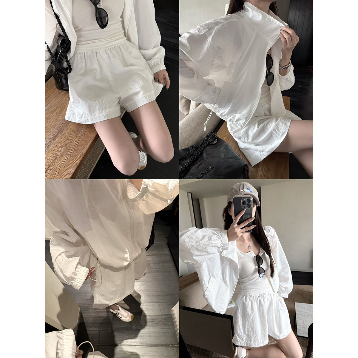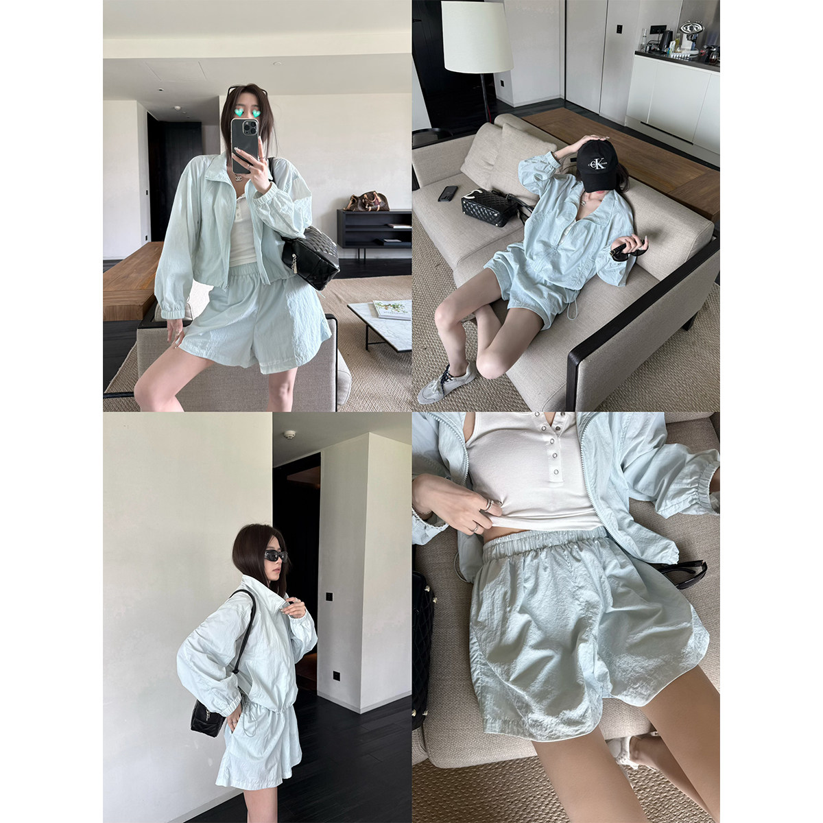 透气户外简约拉链上衣外套休闲短裤 &薄款 女 防晒套装 superniniyy