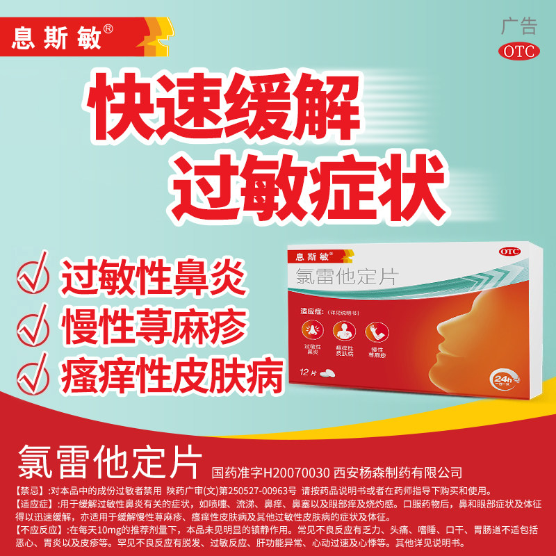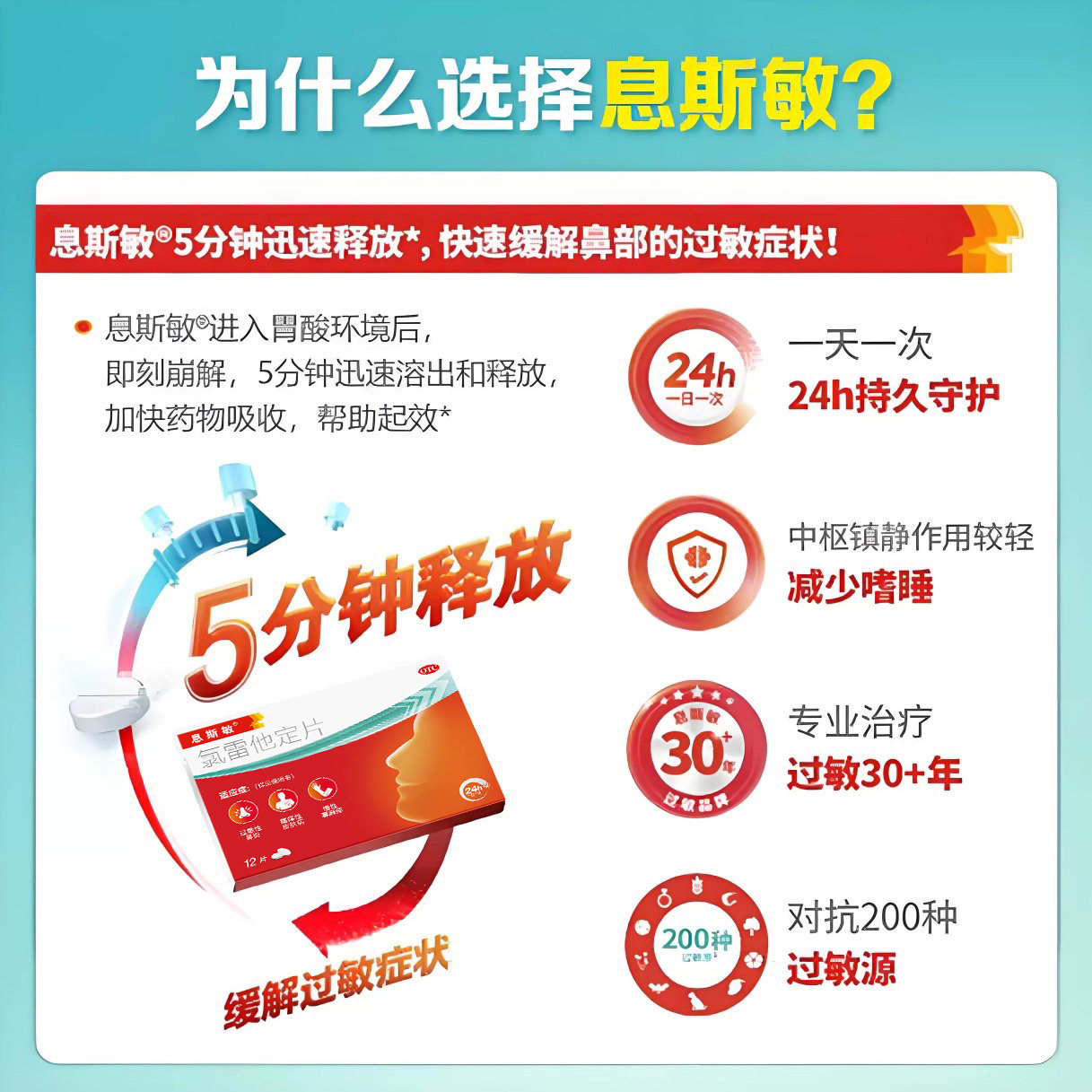 息斯敏氯雷他定片过敏药缓解慢性鼻炎专用药12片正品 官方旗舰店