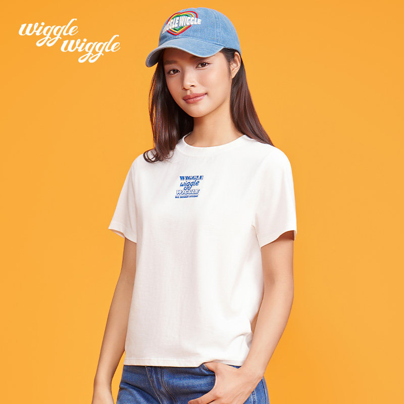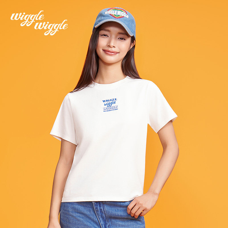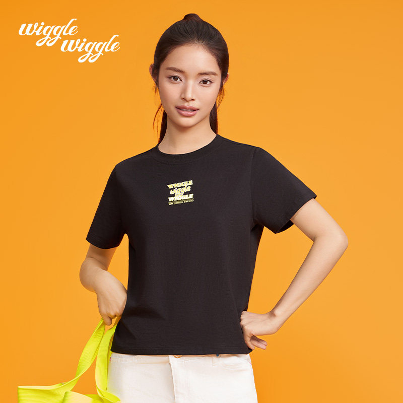 韩款 T恤上衣女装 简约时尚 圆领短袖 修身 wigglewiggle26年早春夏季