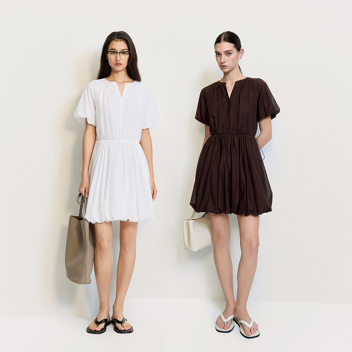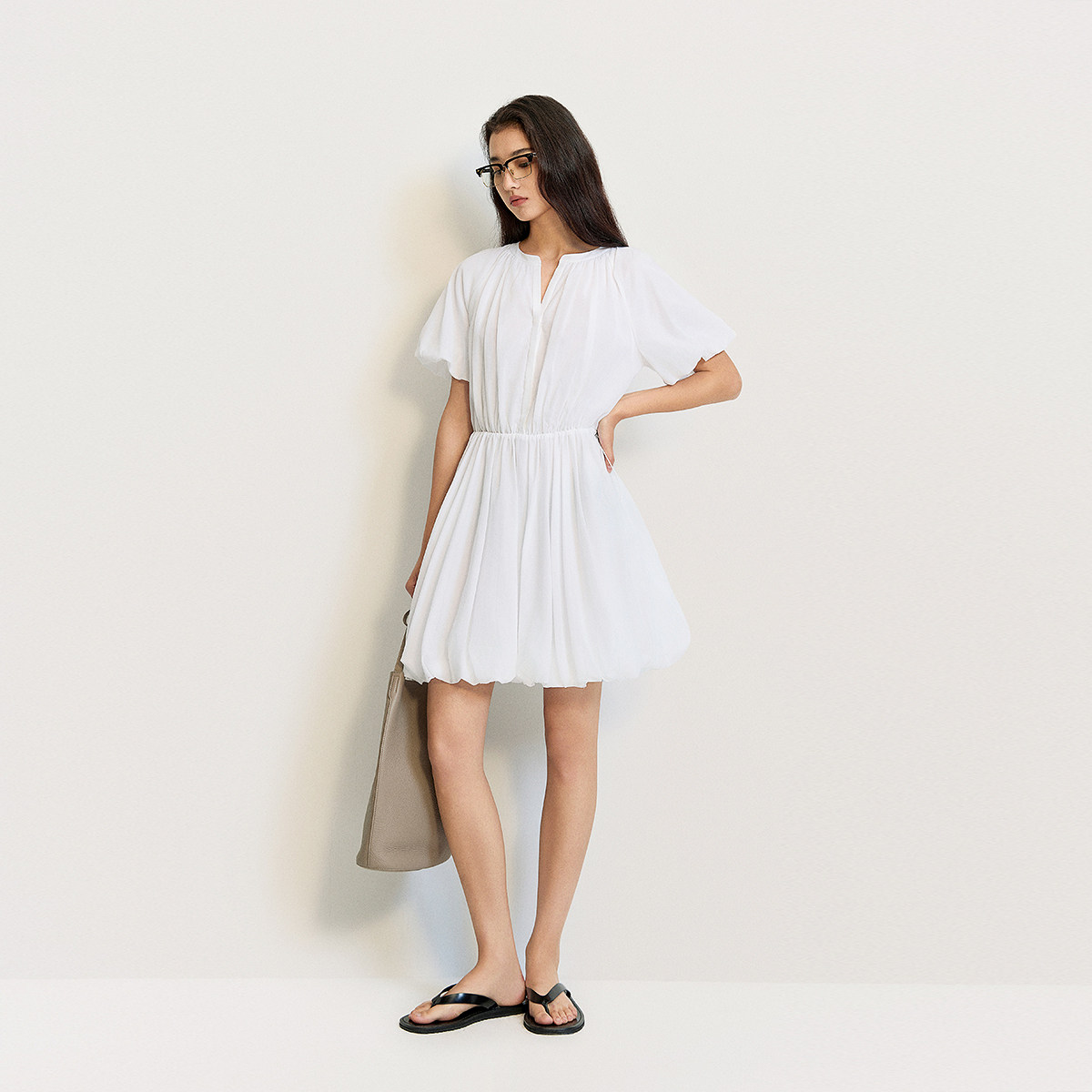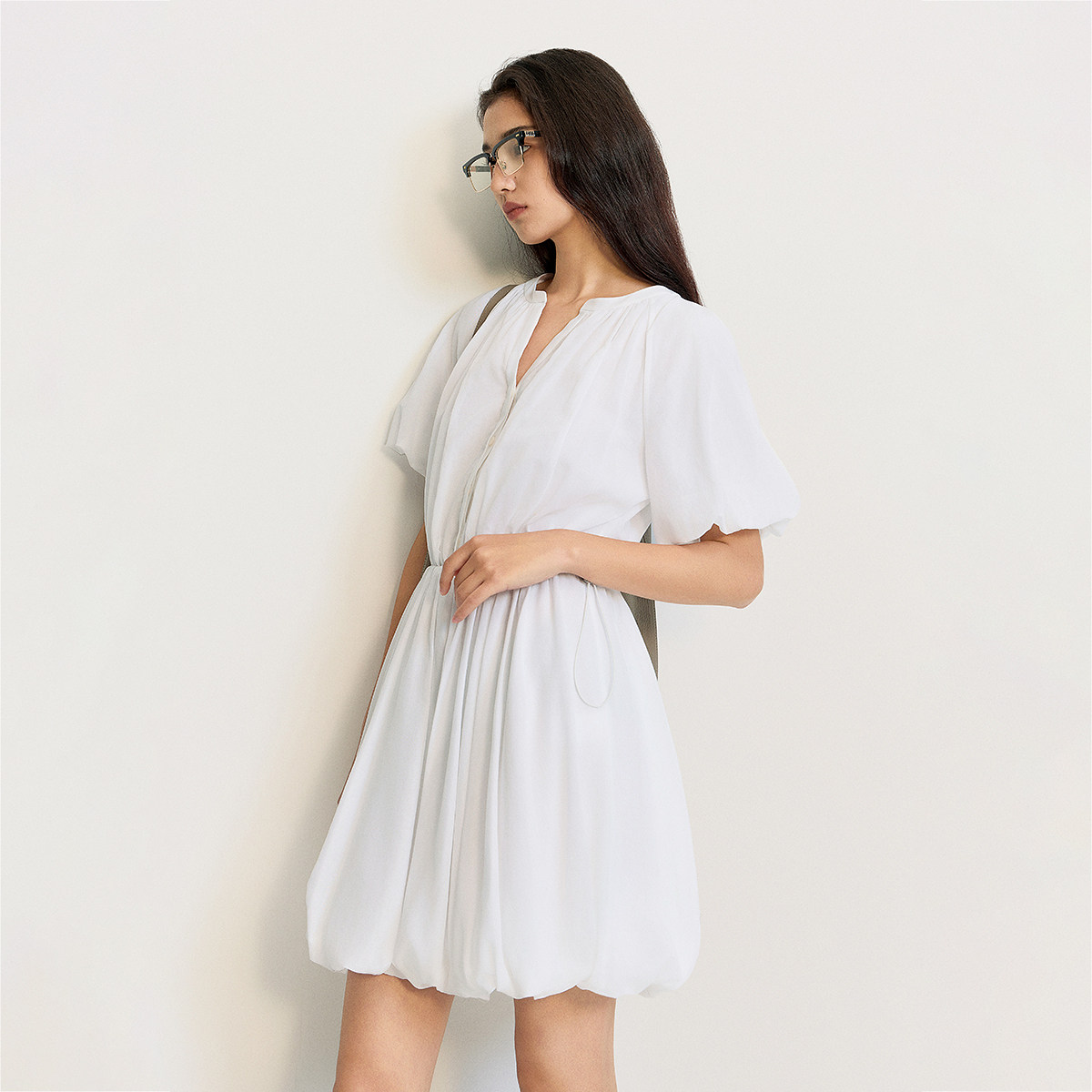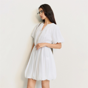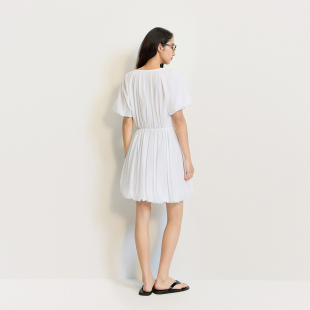 OCHIRLY欧时力 轻薄纯棉花苞裙A字连衣裙裙子收腰抽绳夏