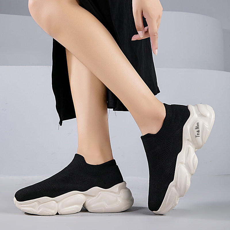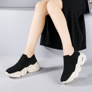 一脚蹬春季 飞织袜子鞋 轻便时尚 增高休闲鞋 Tt&Mm 跑步鞋 汤姆斯女鞋