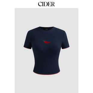 辣椒T恤112417961 CIDER撞色镶边圆领百搭款 明星同款