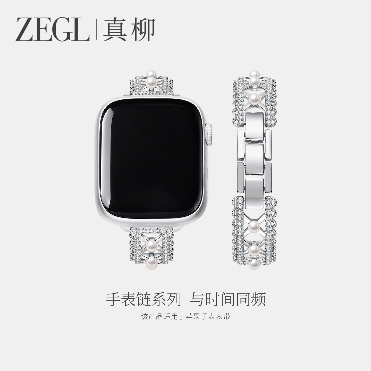 ZEGL设计师适用苹果手表表带兼容applewatchS10芭蕾风手表链iwatchSE表带春夏人造珍珠手链女轻奢小众可调节