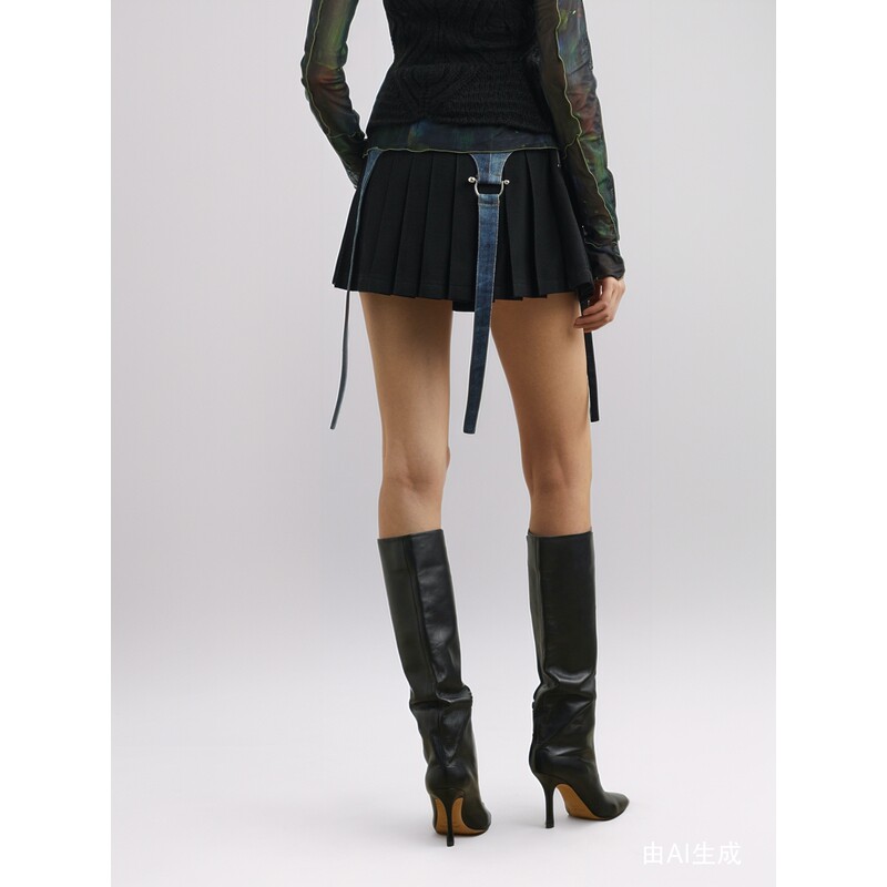 Andersson 春夏女士拼接绵羊毛棉质混纺迷你半身裙 Bell