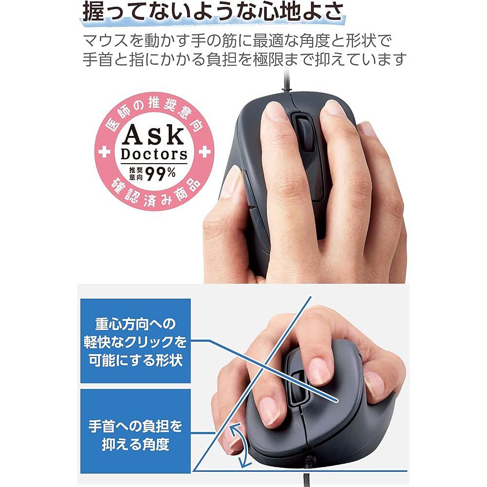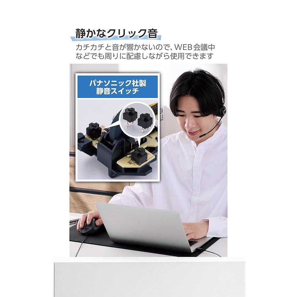 有线鼠标 日本直邮 XGL30UBSK 黑色 ELECOM 静音大尺寸