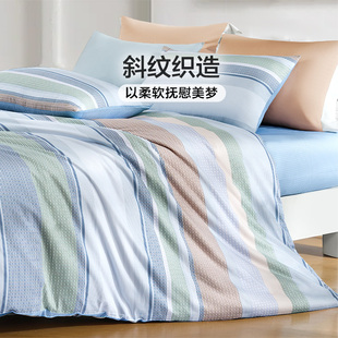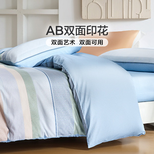 富安娜纯棉套件40支全棉四件套学生宿舍三件套简约印花防尘床罩