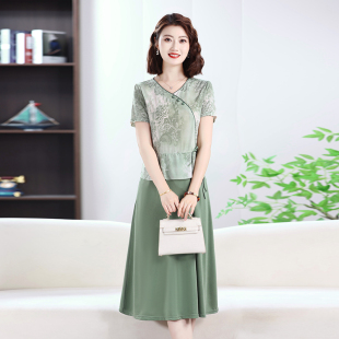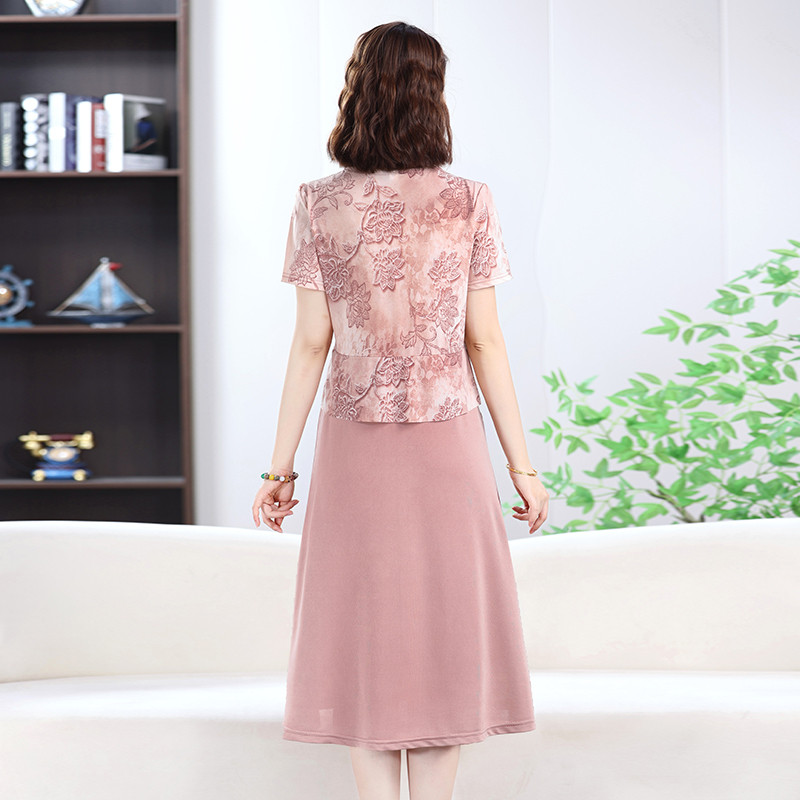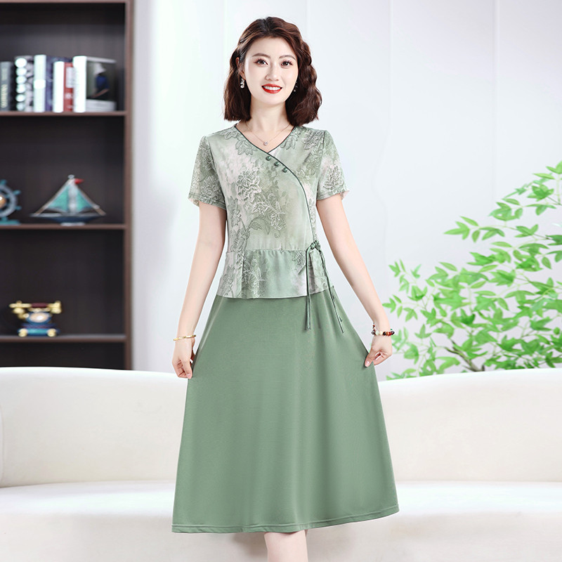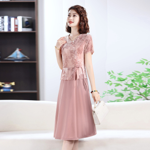 减龄中老年假两件裙子 洋气时尚 妈妈夏装 气质50岁连衣裙套头中长款
