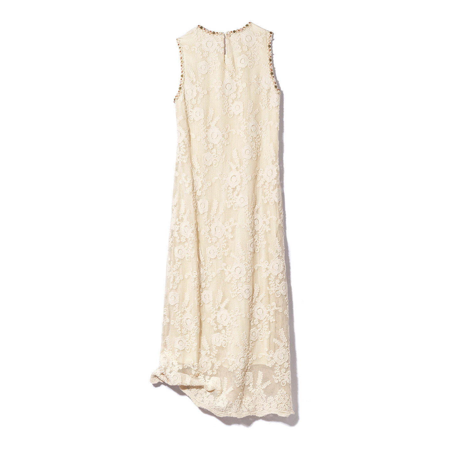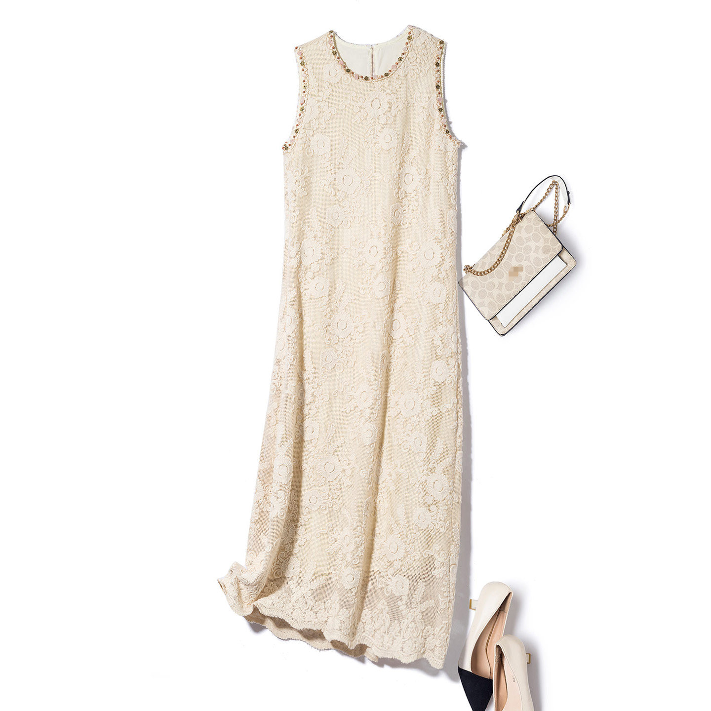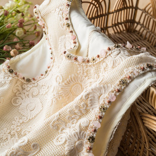 高级感温柔女神重工盘花蕾丝刺绣背心裙子绝美显瘦白色无袖 连衣裙