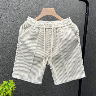 男夏外穿潮牌帅气五分中裤 大裤 2025夏季 男士 衩 新款 高端斜条纹短裤