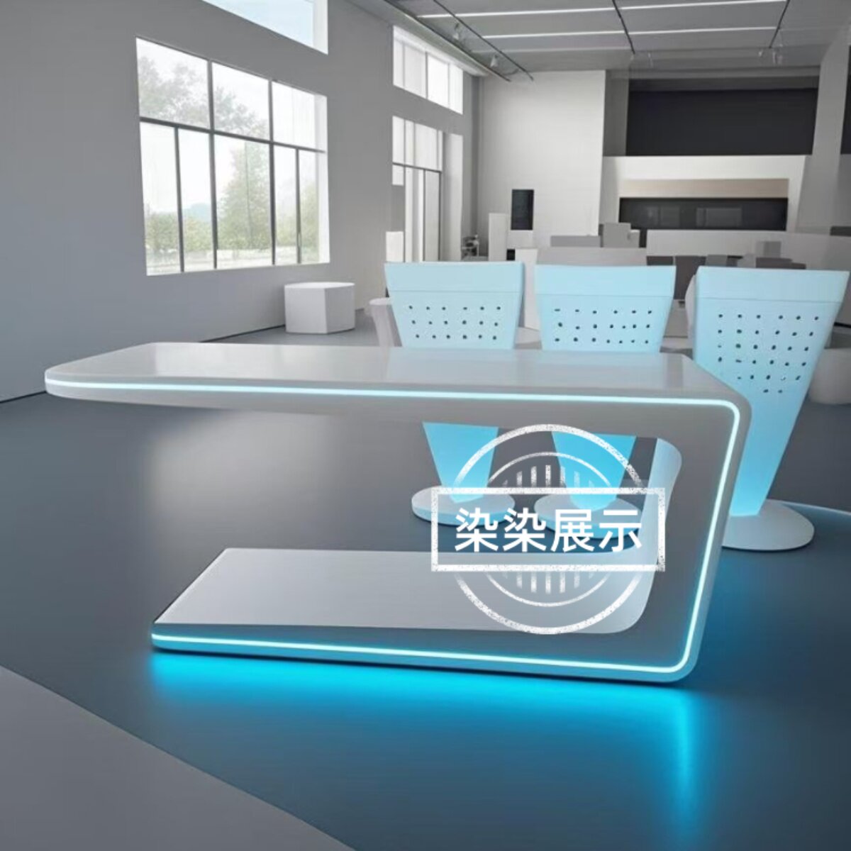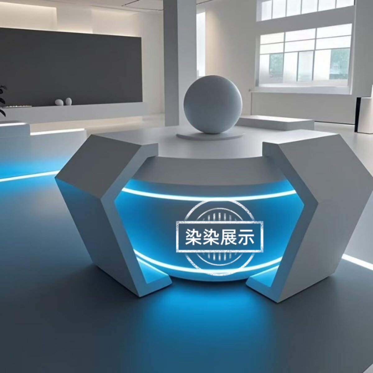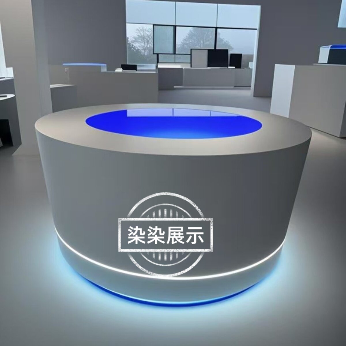 定制科技感展示台展厅中岛体验台圆形玻璃展示柜饰品柜烤漆展示桌