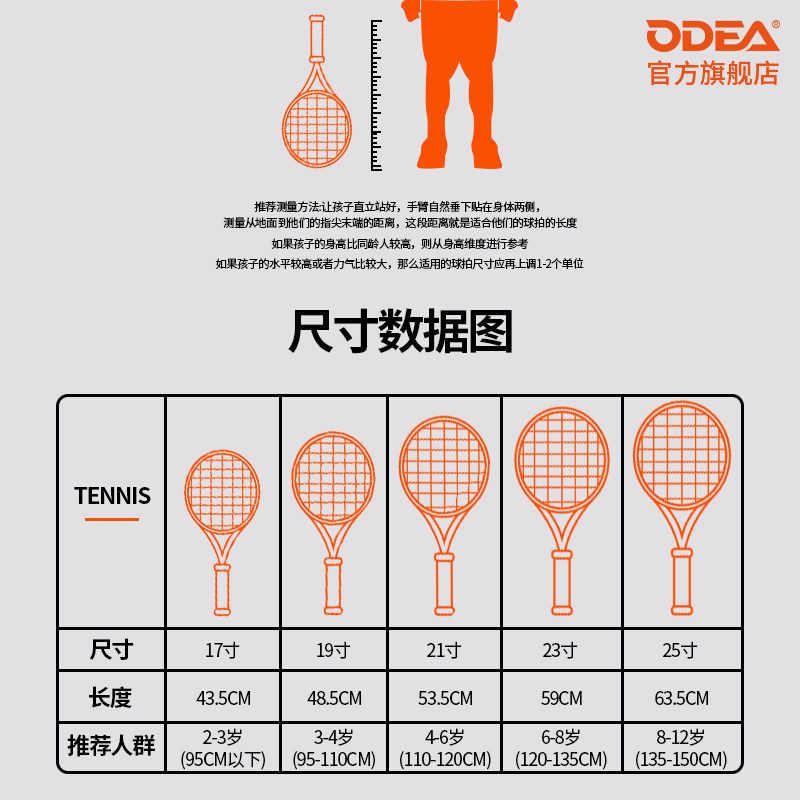 欧帝尔ODEA儿童青少年网球拍19 25寸训练拍 21寸幼儿小学生初学23