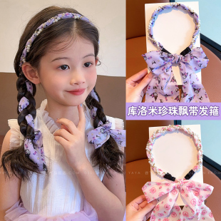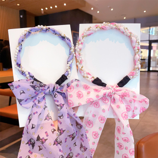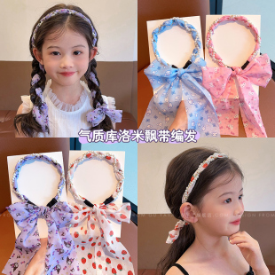 可爱编发发箍儿童森系珍珠发饰女童扎头发丝巾飘带仙女压发头箍