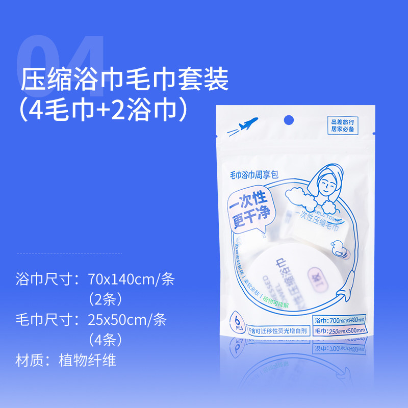名创优品一次性压缩浴巾毛巾4条毛巾2条浴巾套装 周享包出现旅游