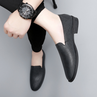 百搭一脚蹬英伦复古尖头小码 2026新款 豆豆鞋 男士 真皮休闲小皮鞋