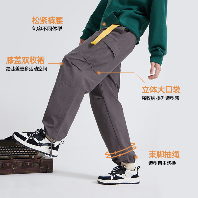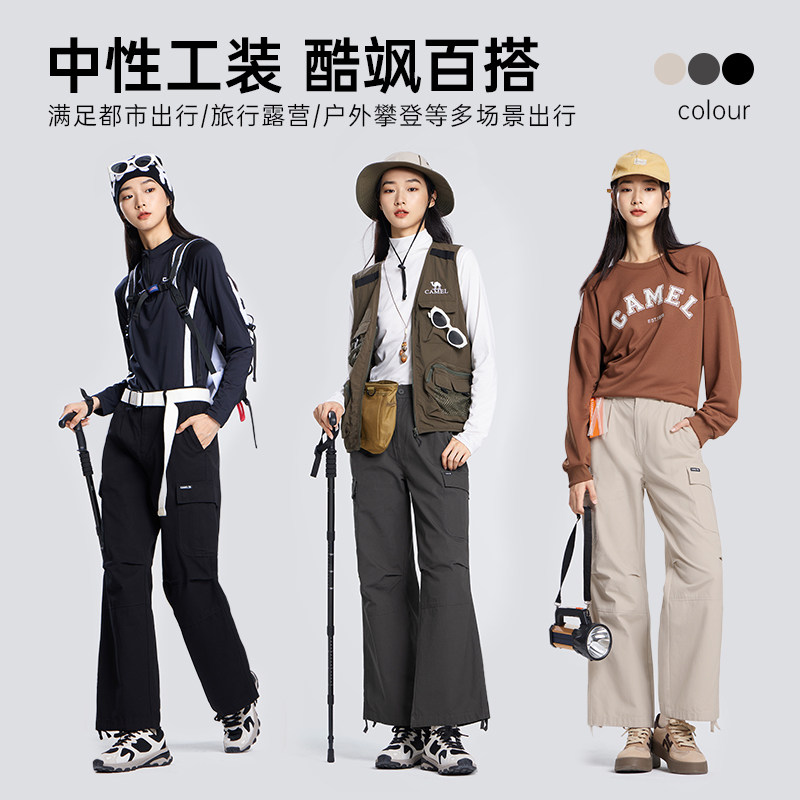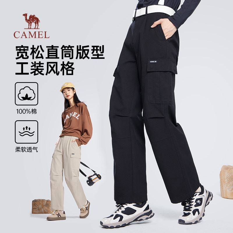 裤 子女运动休闲长裤 男秋季 宽松直筒纯棉裤 潮 2026新款 骆驼阔腿工装