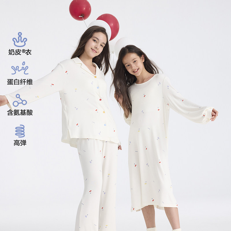 套装 爱慕少女3A抗菌家居服秋冬新款 睡衣裤 长袖 奶皮衣 女大童开衫