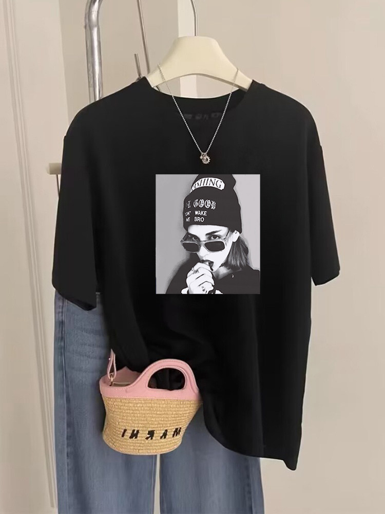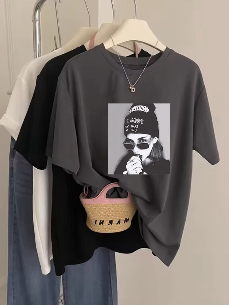 胖mm大码 白色纯棉短袖 休闲风女装 新款 显瘦港风上衣ins T恤2026夏季