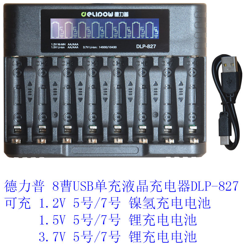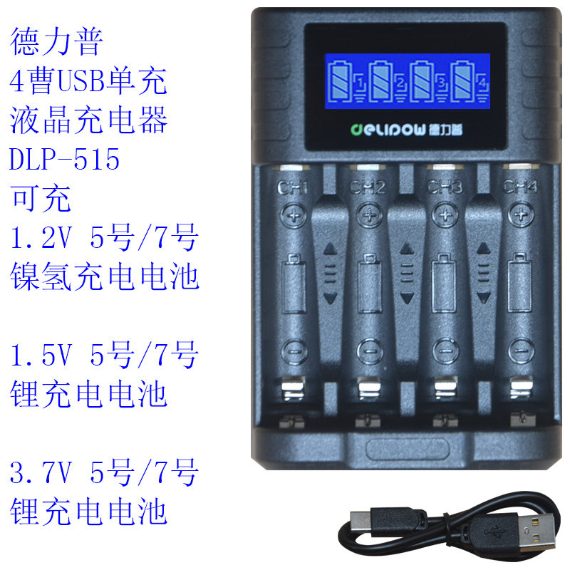 827 535 858 515 德力普5号7号1.5V锂充电电池智能液晶充电器DLP