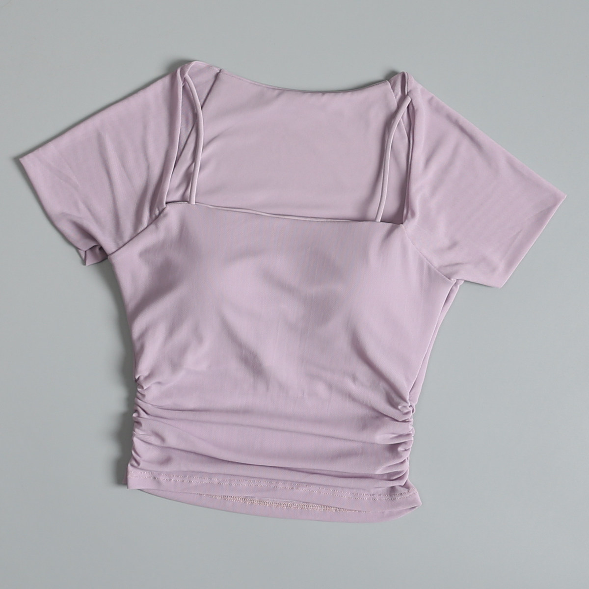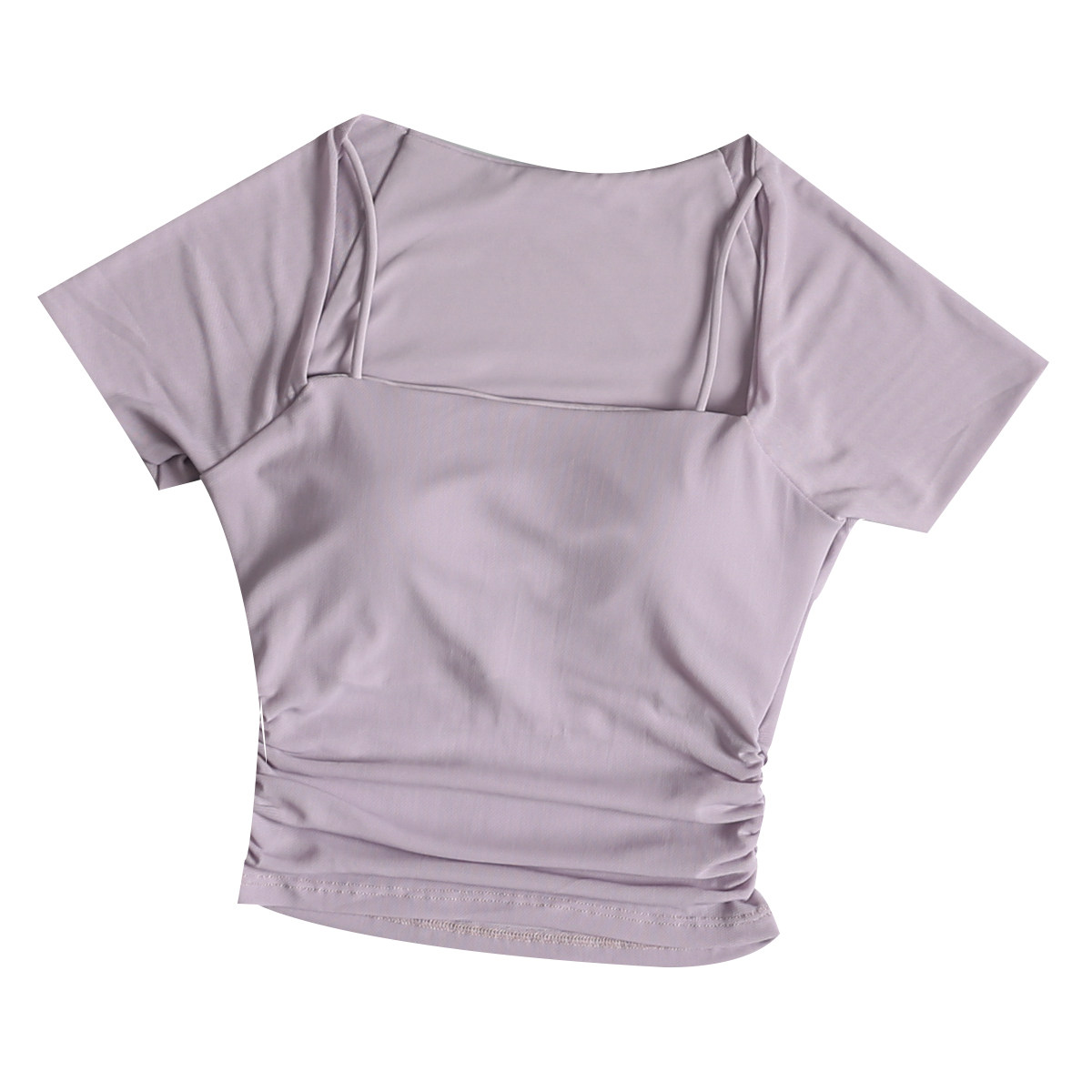 胸垫网纱显瘦运动上衣速干跑步健身套装 一体式 女夏季 瑜伽服短袖