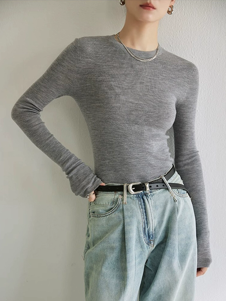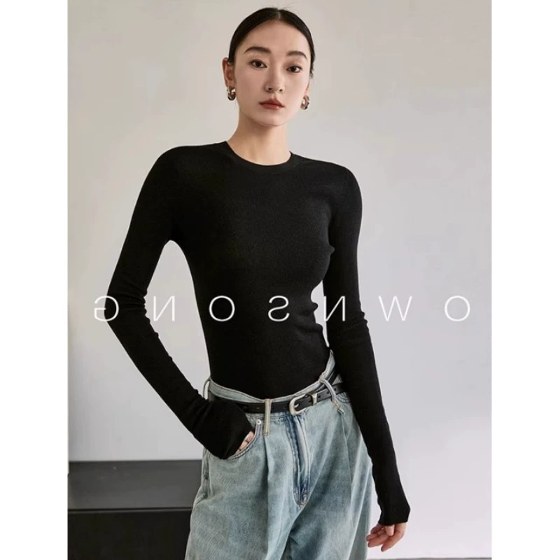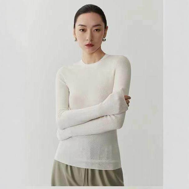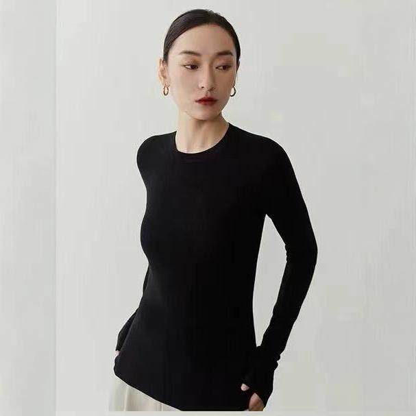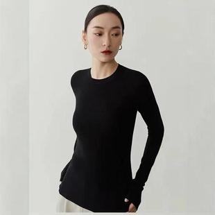 德国扬子纱120s可机洗亲肤柔软羊毛圆领显瘦百搭打底针织衫 女