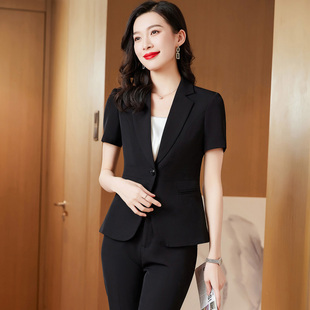 西装 正装 套裙女薄款 职业套装 酒店前台面试工作服高档通勤大码 夏季