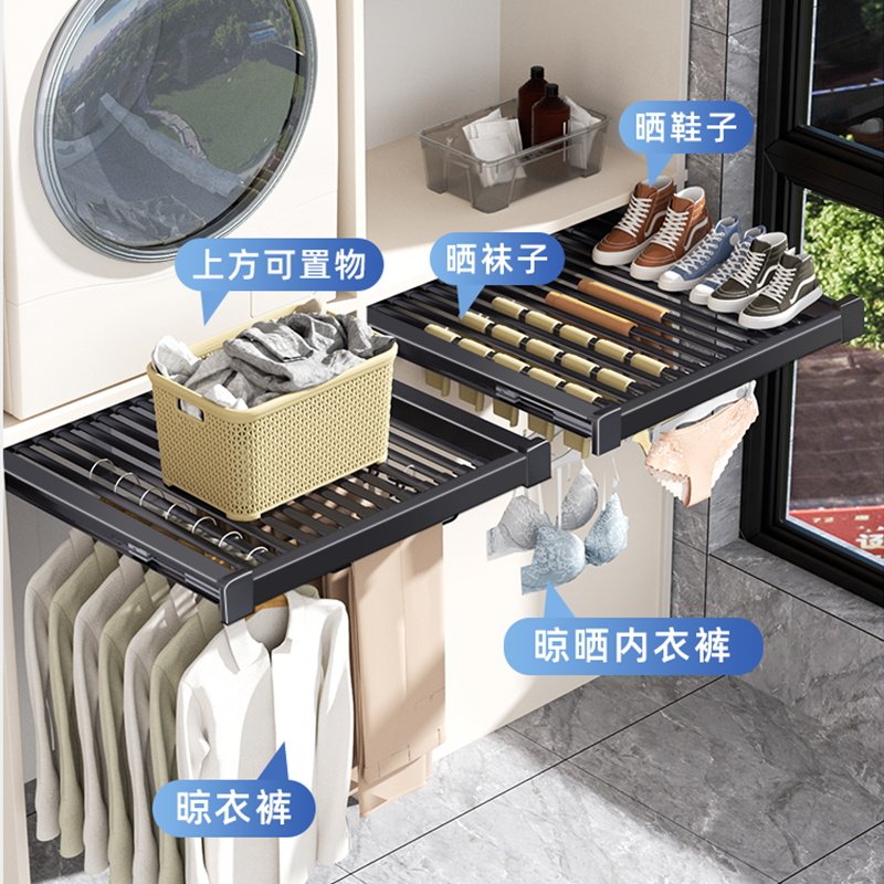 洗衣机抽拉衣架阳台上方隐形晾衣架多功能伸缩裤 架衣柜内置滑轨