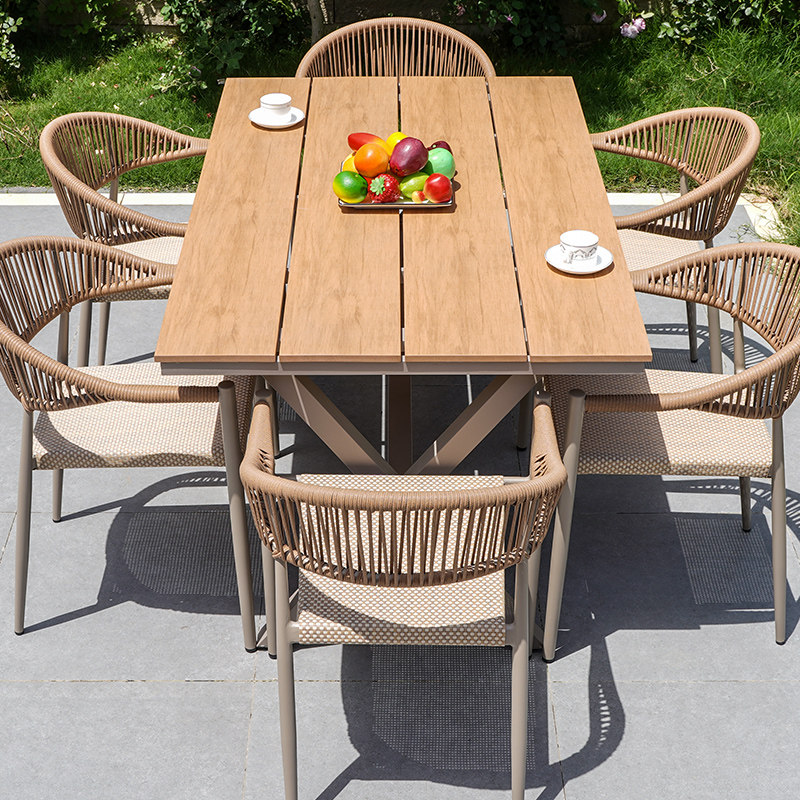 户外塑木桌椅庭院别墅藤编花园露台铝合金室外休闲北欧外摆餐桌椅
