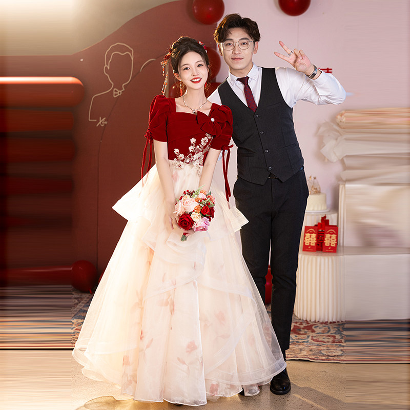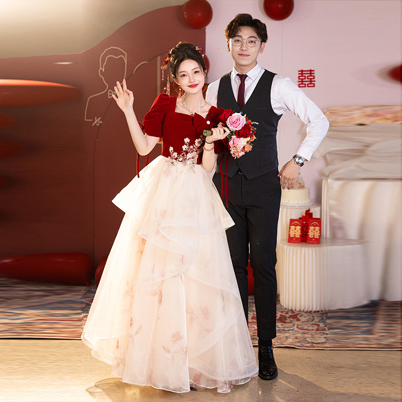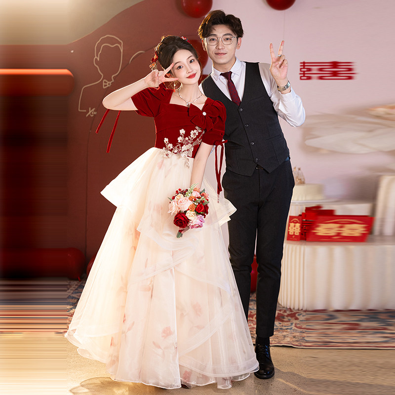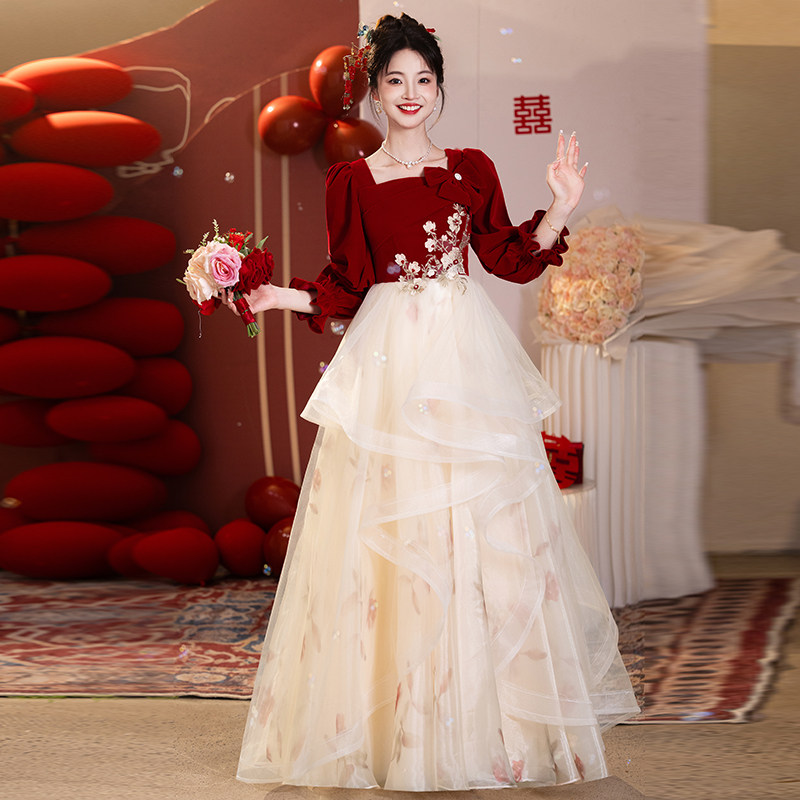 红色订婚结婚礼服女出阁宴回门高级感 冬季 大码 敬酒服新娘2025新款