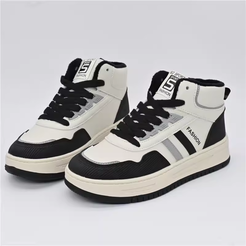 新款 冬季 保暖板鞋 高帮休闲鞋 电池熊猫鸿星尔克鞋 厚底运动鞋 子男鞋