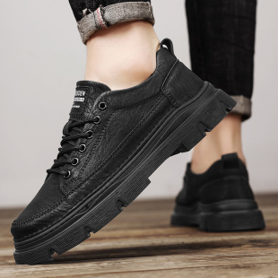 春季 2024工装 低帮休闲板鞋 男士 马丁靴 男潮流英伦厚底商务皮鞋 男鞋