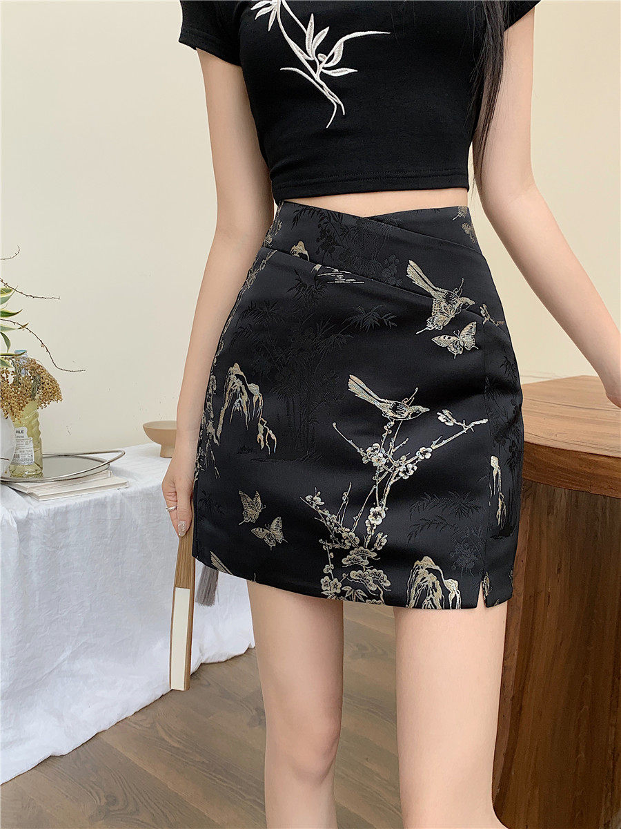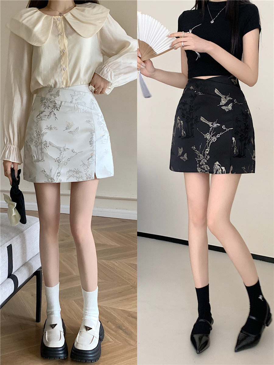 新中式 高腰a字显瘦短裙复古提花包臀裙 国风刺绣半身裙女春夏大码