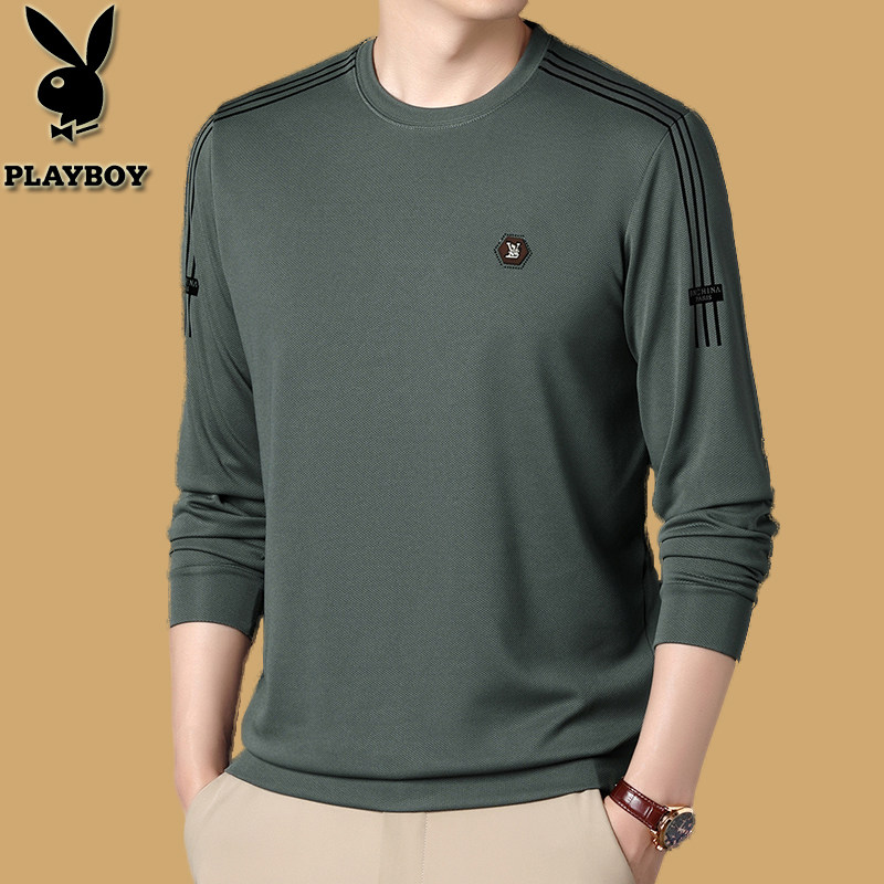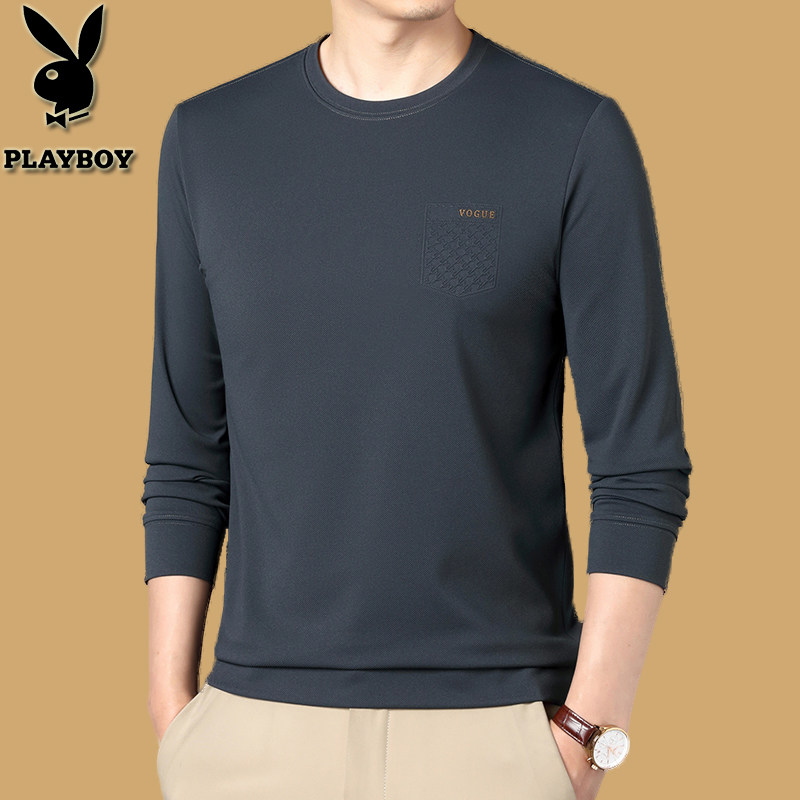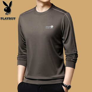 圆领卫衣男秋衣T 中年春秋纯色棉质宽松打底衫 花花公子长袖 t恤男士