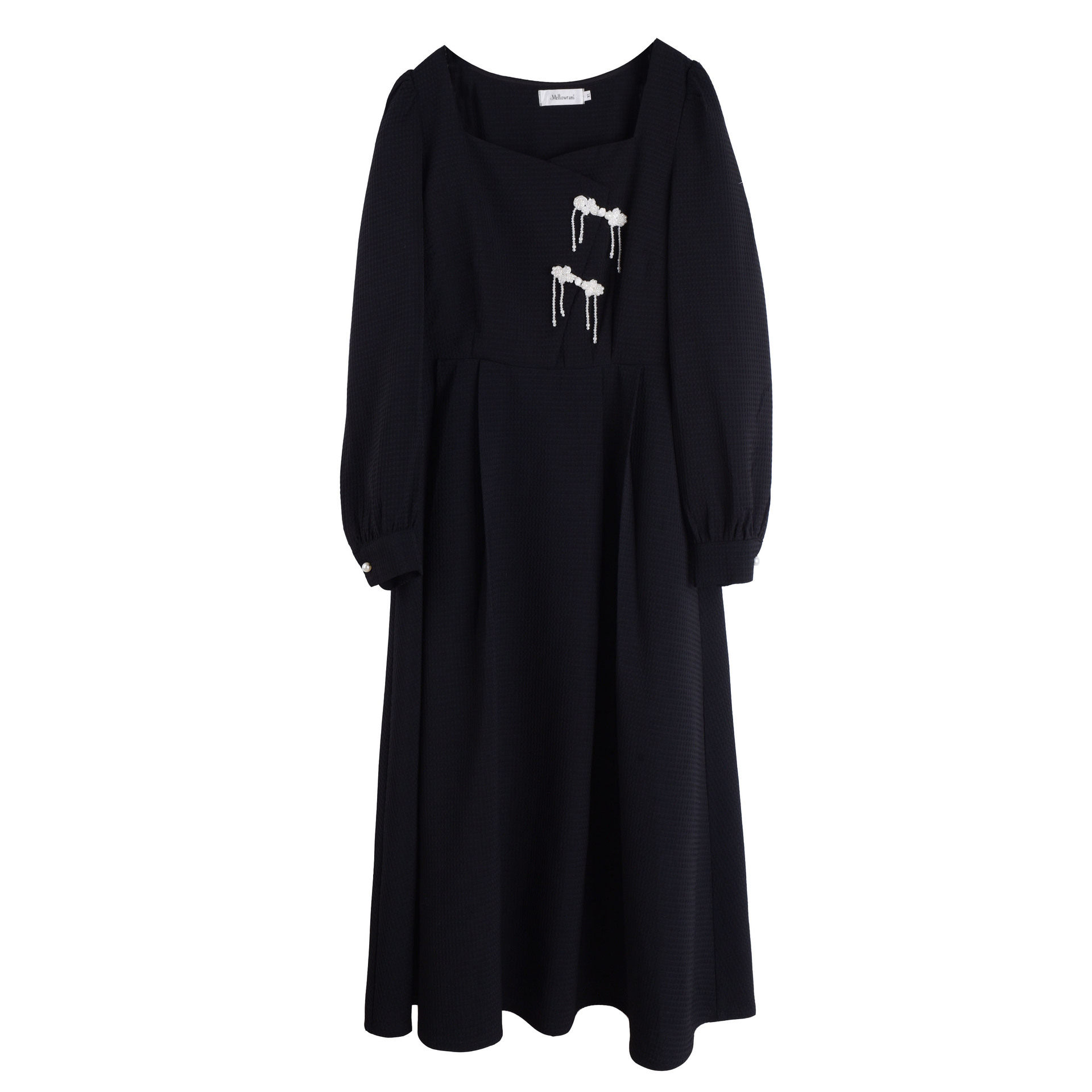 安妮不火赫本风拼接连衣裙女2025秋冬新款 小众假两件裙子 微胖大码