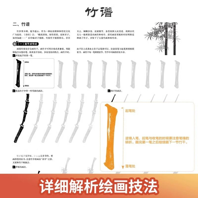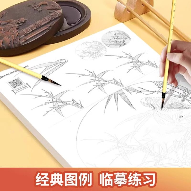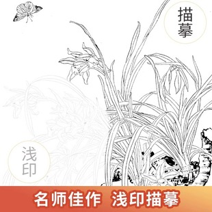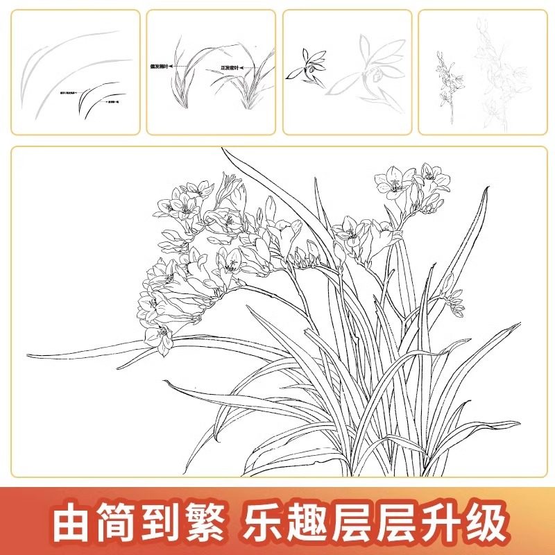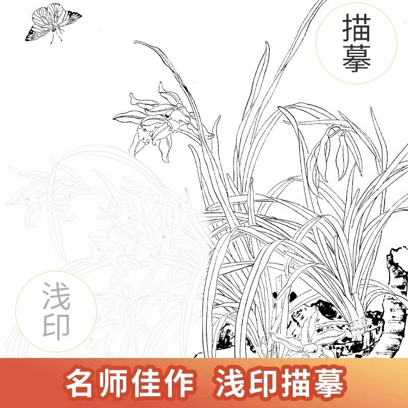 中国画白描梅兰竹菊篇 四君子工笔花卉底稿临摹国画白描临摹画册工笔白描画稿勾线笔绘画艺术国画入门书籍 工笔白描花卉入门教程