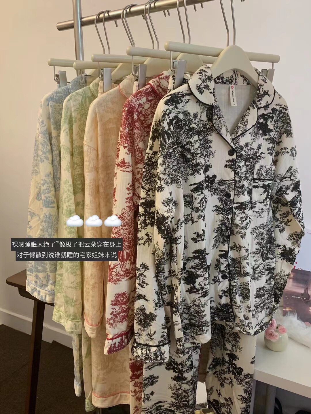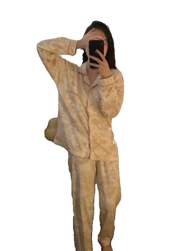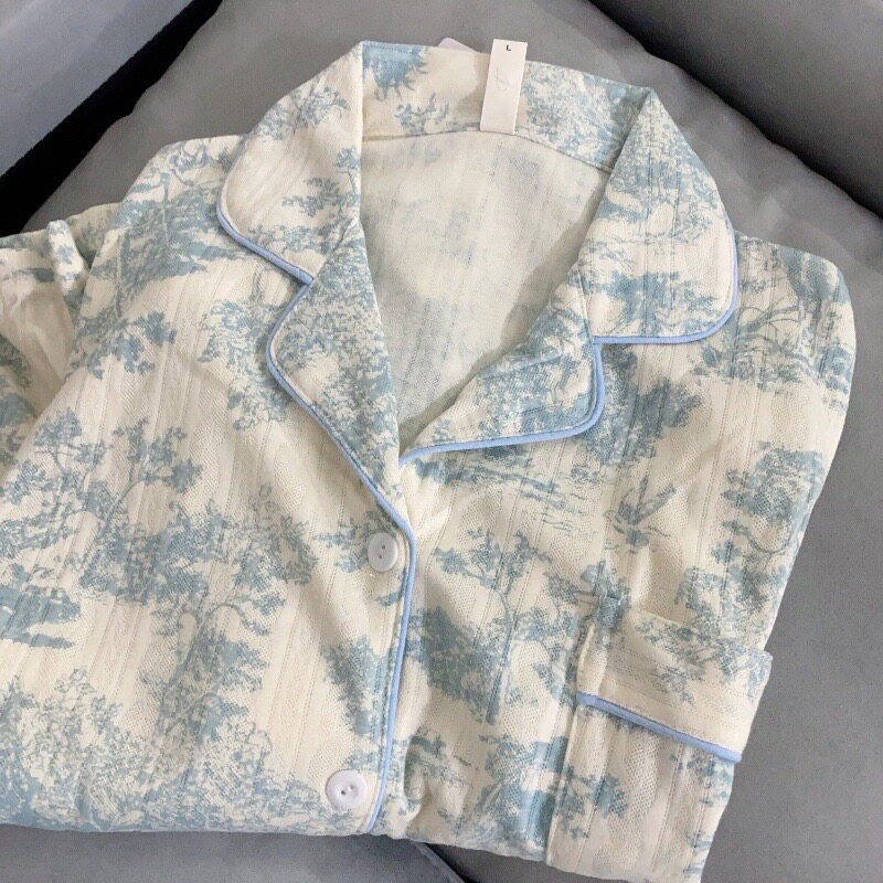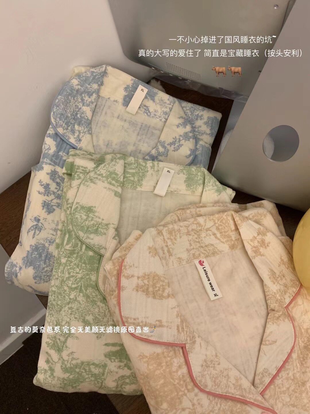 长袖 高级感家居服套装 长裤 纯棉休闲法式 衬衫 莫奈花园睡衣女春秋款