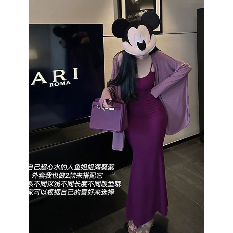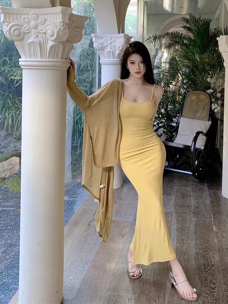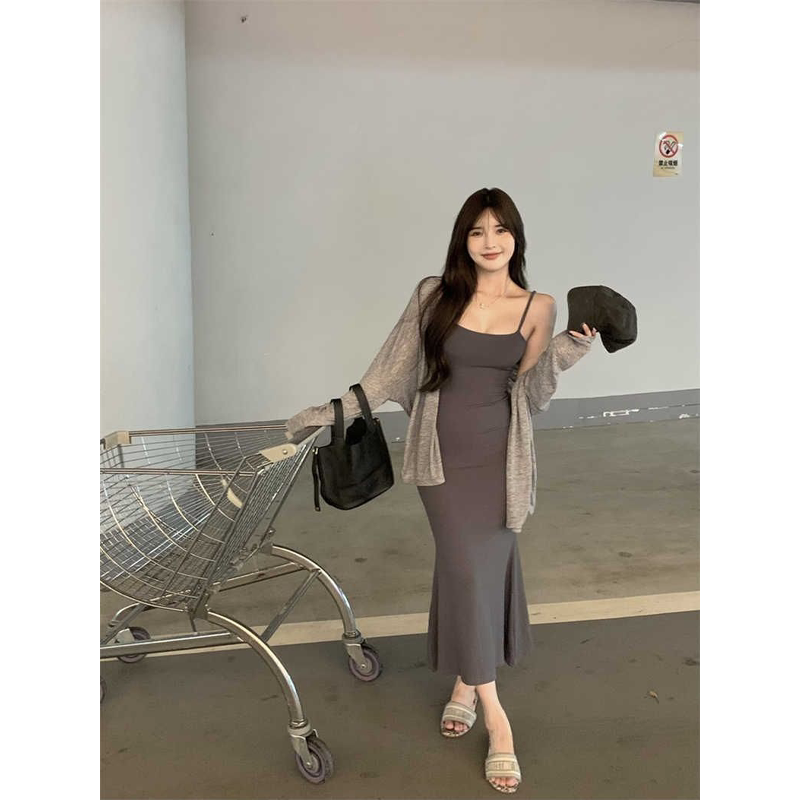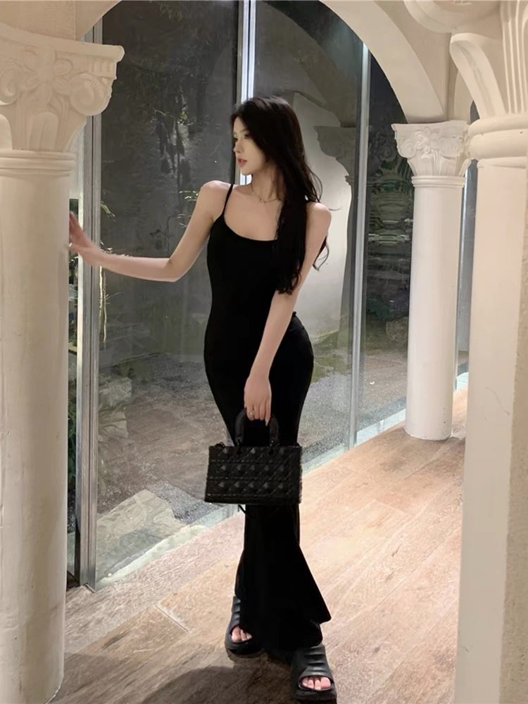 性感紧身吊带连衣裙女夏季 内搭裙子小妈裙鱼尾包臀中长裙 收腰修身