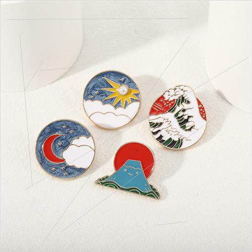 sun brooch Fuji Van Mount cartoon waves moon ins Gogh new