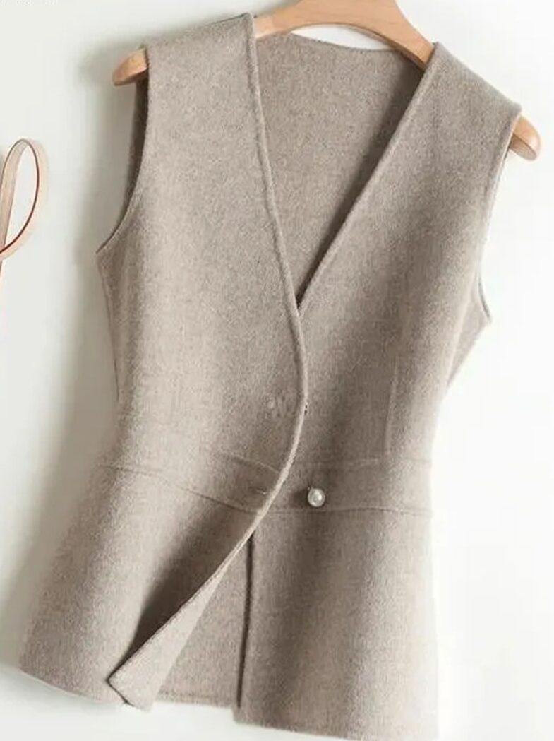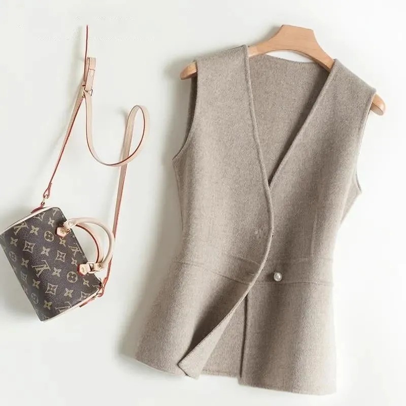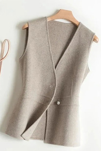 V领坎肩外套 小个子修身 毛呢背心马甲大衣女2024春秋新款 高端短款