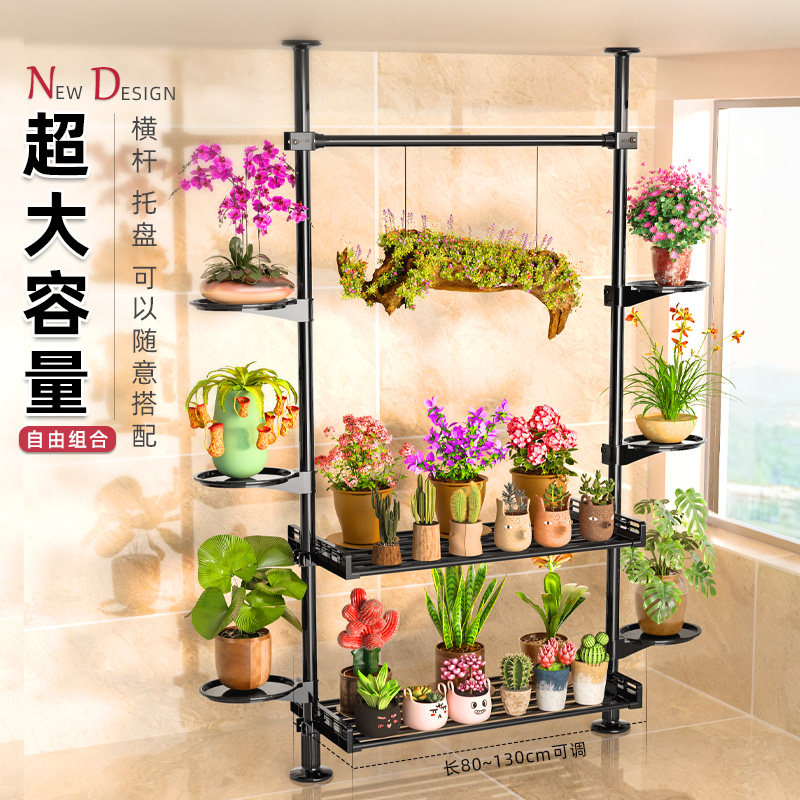 顶天立地花架窗台延伸加宽阳台室内墙角置物架新款 杆飘窗高花架子
