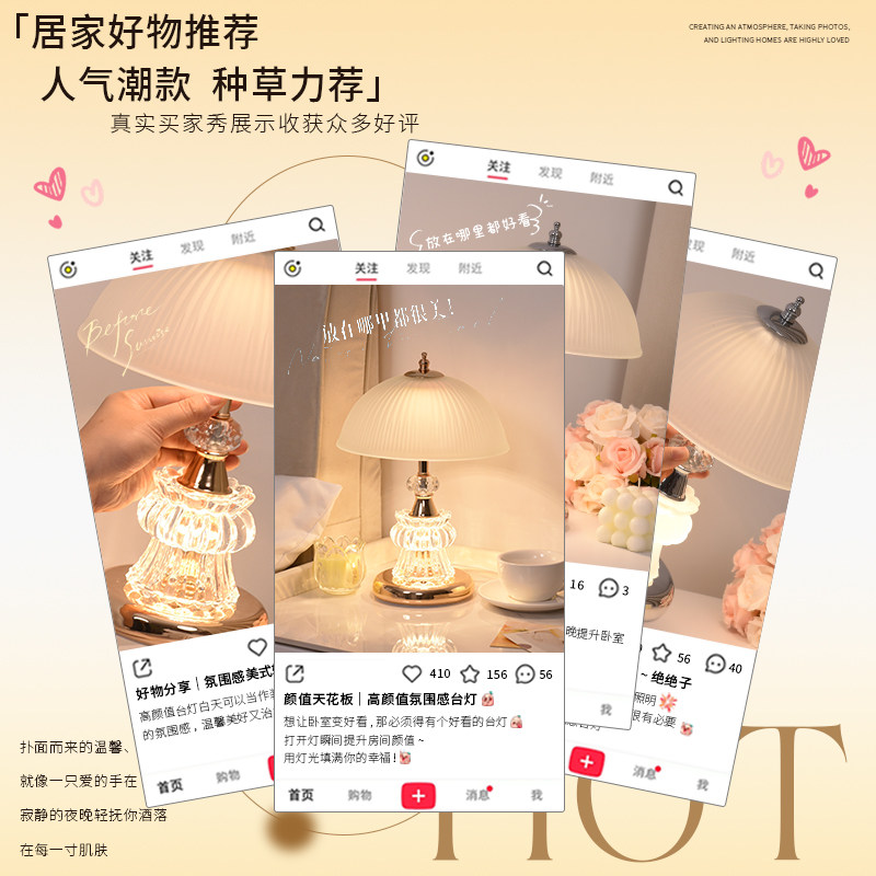 台灯床头灯卧室复古夜灯温馨浪漫桌面装 饰氛围感客厅护眼书房遥控