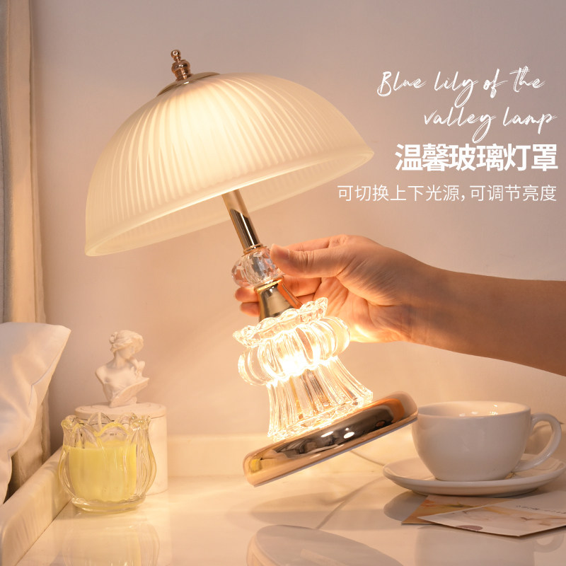 北欧丹麦轻奢复古铃铛台灯卧室简约高级感装 饰氛围灯床头灯蘑菇灯